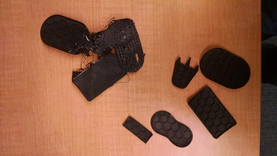 When I returned to the lab, the machine was on its second attempt. The first attempt resulted in the pieces on the right. I do not know why it was stopped. The second attempt was resulting on the mess on the left.